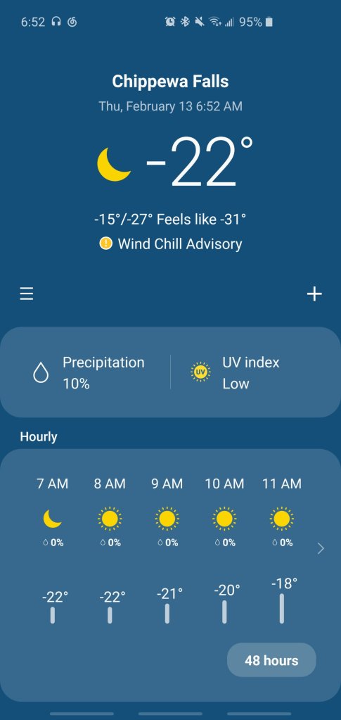 起床洗漱好穿好衣服准备出门的时候拿手机看了下温度,天啊怎么能这么冷,这天气巴不得把我这个南方留学生冷死是不是?下面两张截图分别是早上出门和下完放学时截的温度。